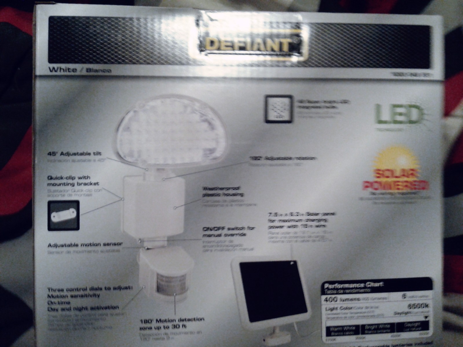 Defiant 180 White Solar Powered Motion Led Security Light W