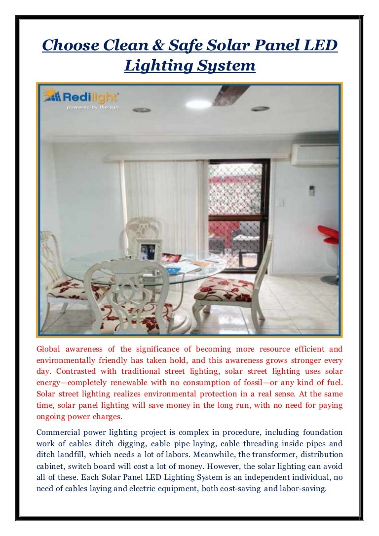 Choose Clean Safe Solar Panel Led Lighting System Redilight