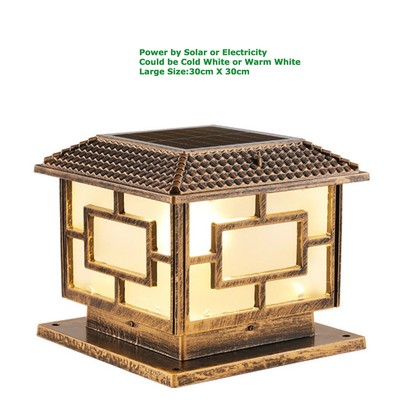 Retro Solar Outdoor Pillar Mounted Coach Lights Metal Lantern