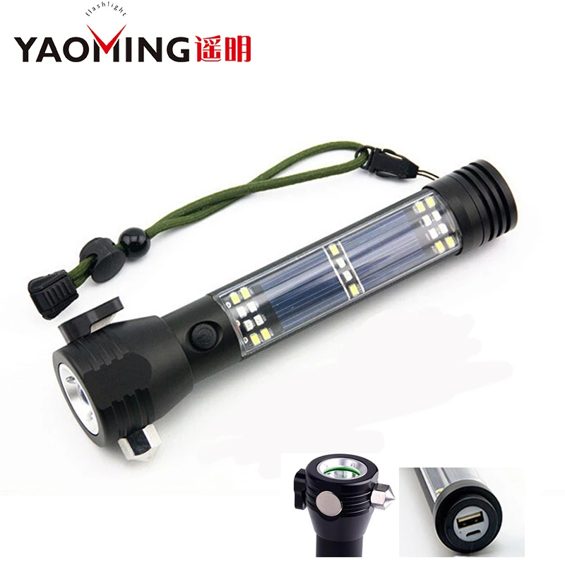 Solar Powered Tactical Flashlight Car Flashlight Rechargeable