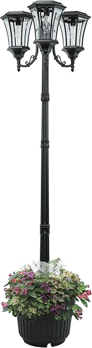 7 Ft 85 In Tall Solar Lamp Post And Planter 3 Heads White Amber