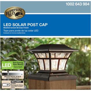 Hampton Bay 84044 Bronze Solar Led Deck Post Cap Light 4 X4 6 X6