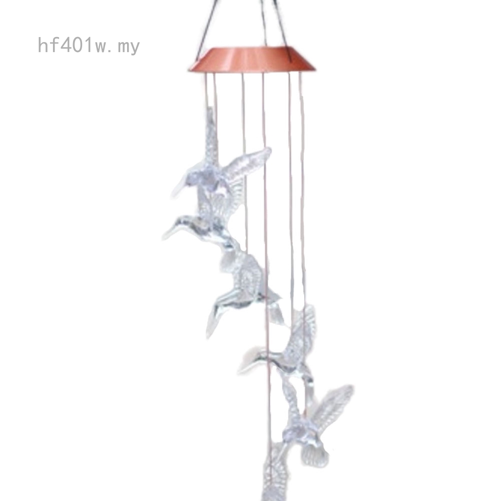 Solar Color Changing Led Hummingbird Wind Chimes Home