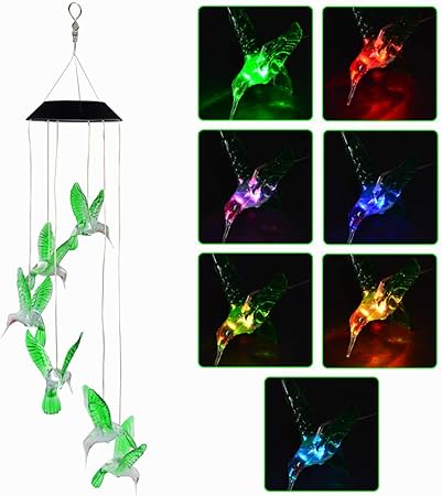 Amazon Com Topspeeder Led Solar Hummingbird Wind Chime Changing