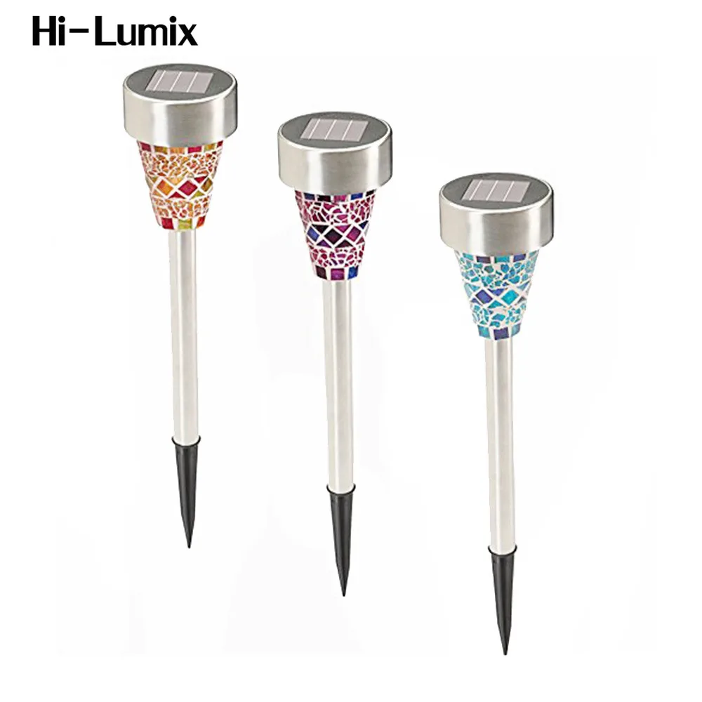 Hi Lumix 3pc Lot 3 Color Mosaic Solar Lights Outdoor Led Garden