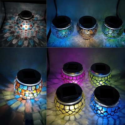Solar Powered Mosaic Glass Garden Lights Color Changing Solar