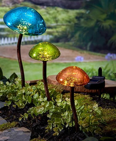 Set Of 3 Mushroom Garden Lights Walmart Com Walmart Com