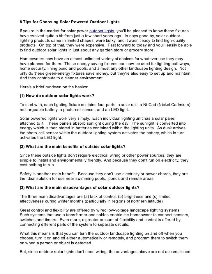 8 Tips For Choosing Solar Powered Outdoor Lights