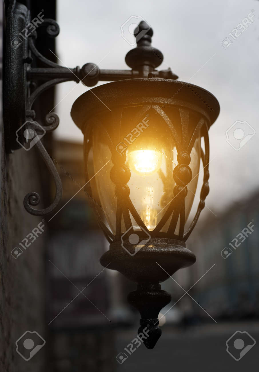 Antique Garden Lights With Solar Battery On The Street Cafe Stock