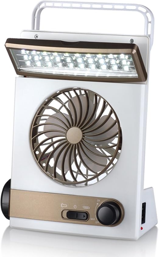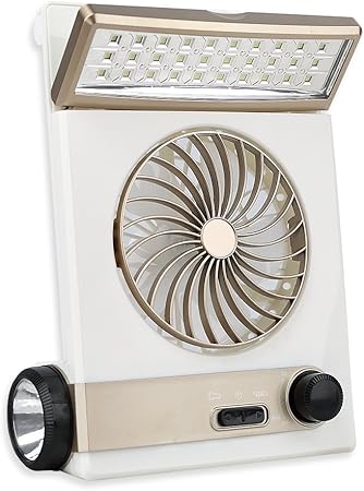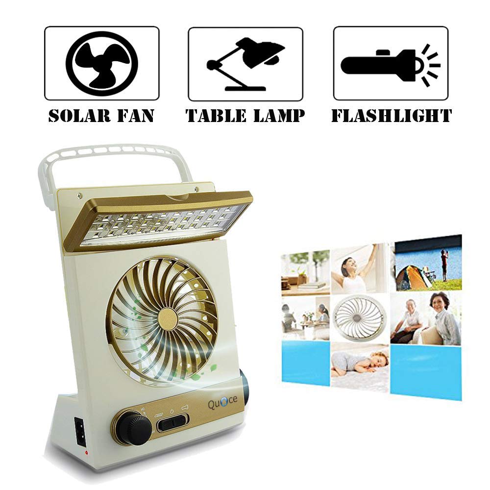Solar Rechargeable Light With Fan Gold White Latestgadget