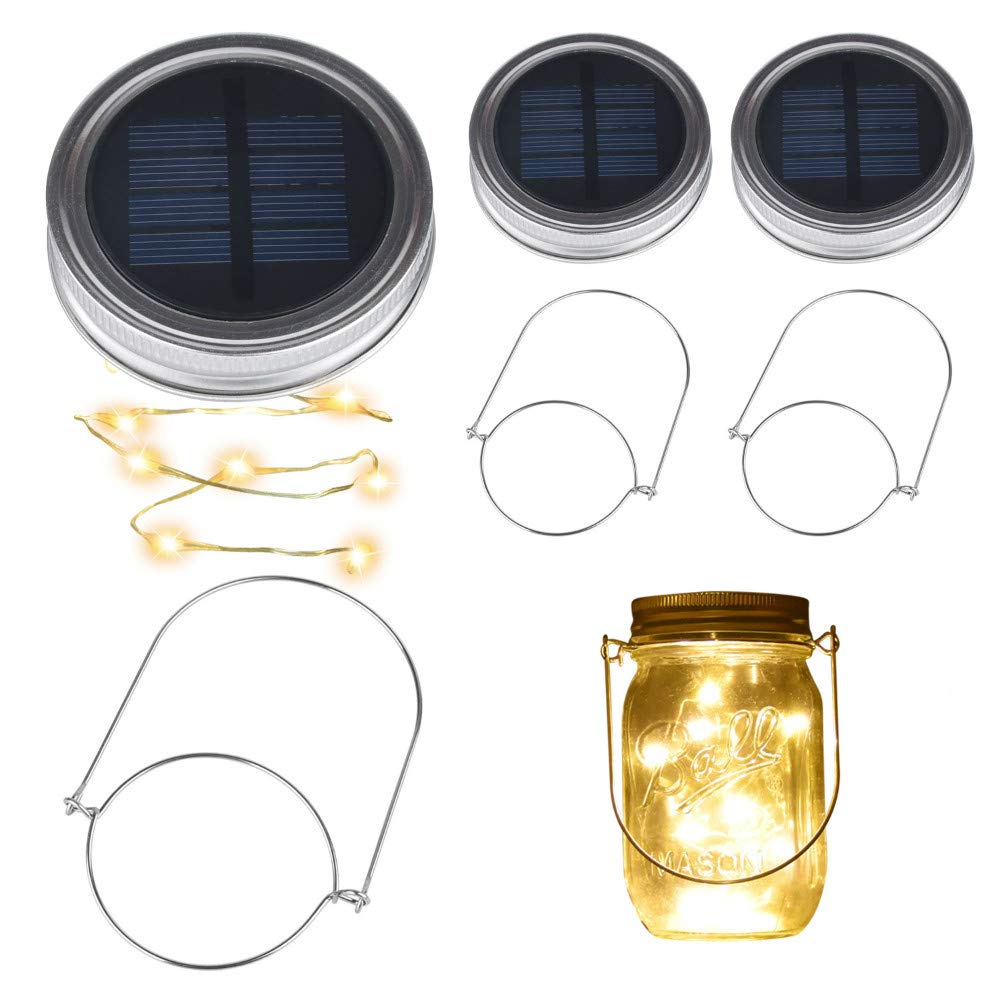 Bizoerade Solar Mason Jar Lights Dual Row Solar Powered 10 Led