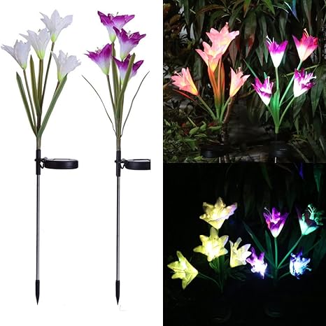 Outdoor Home Garden Solar Light Lily Flower 2 Pack Solar Powered