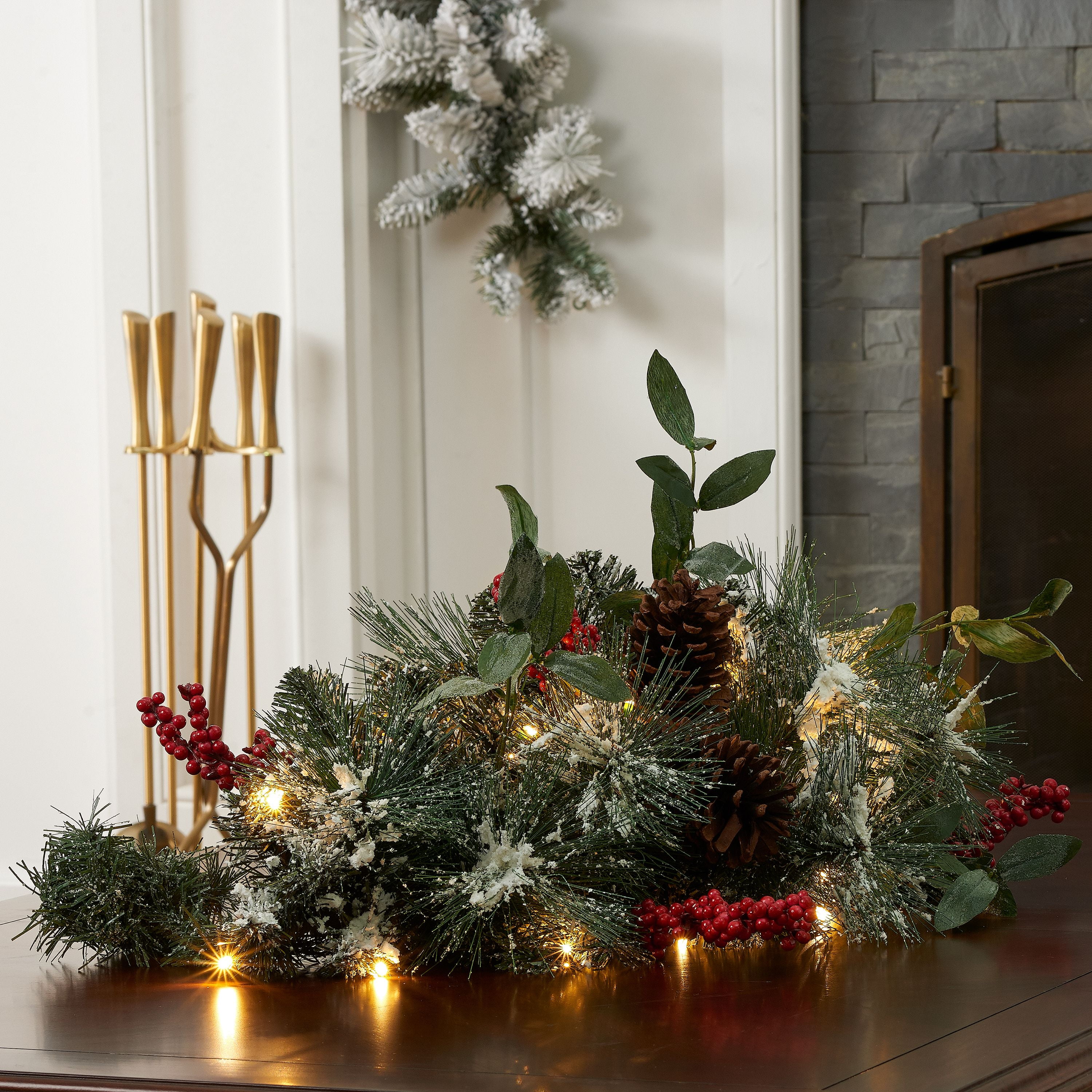 Lighted Frosted Pine Christmas Floral Swag Holiday Wreath Wall