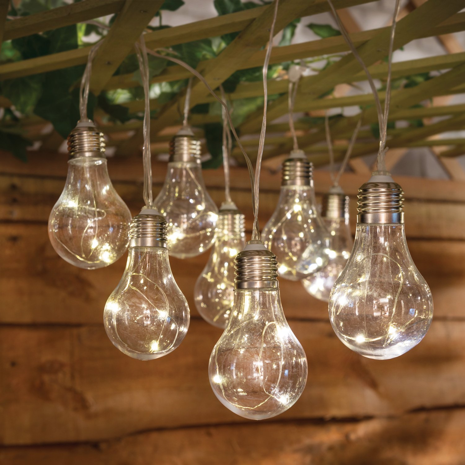 Solar Powered Light Bulb String Lights 10 Warm White Led Retro