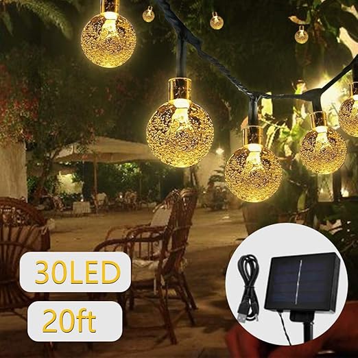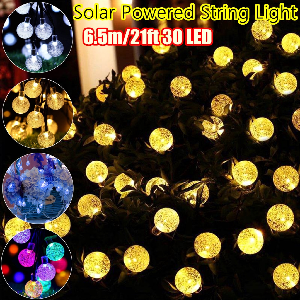 6m 30 Led Solar Powered Outdoor String Lights Crystal Ball Led