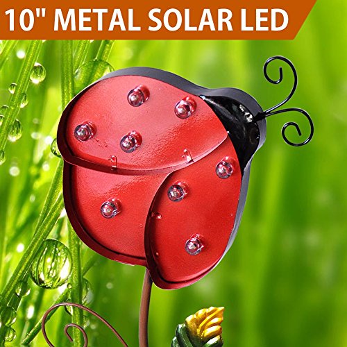Bright Zeal 10 Big Metal Ladybug Solar Lights Yard Art Outdoor