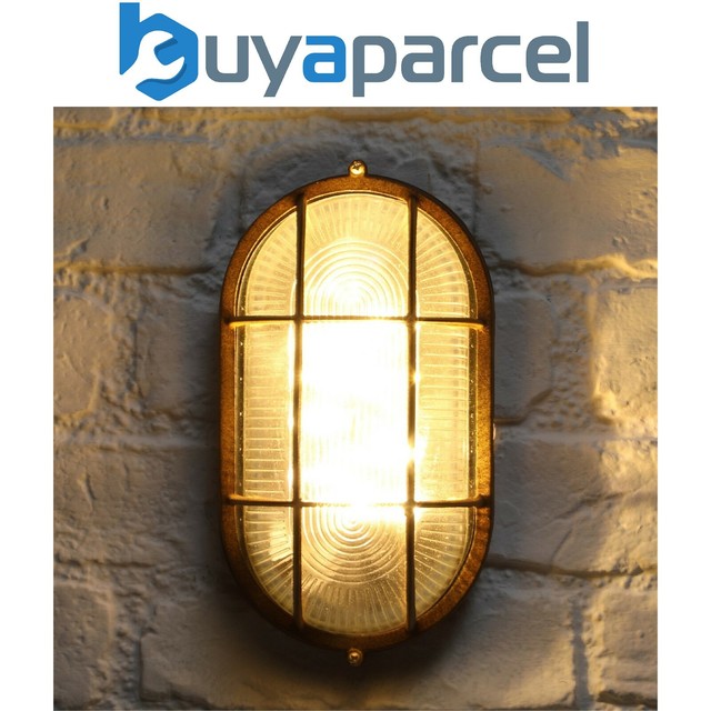 Noma Solar Oval Cage Bulk Head Rustic Copper Wall Porch Light