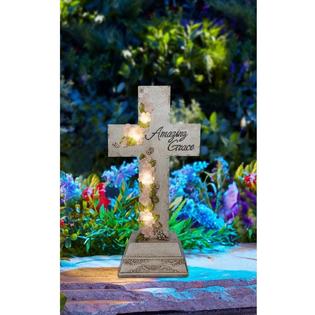 16318 Garden Lights Solar Powered Led Amazing Grace Cross White