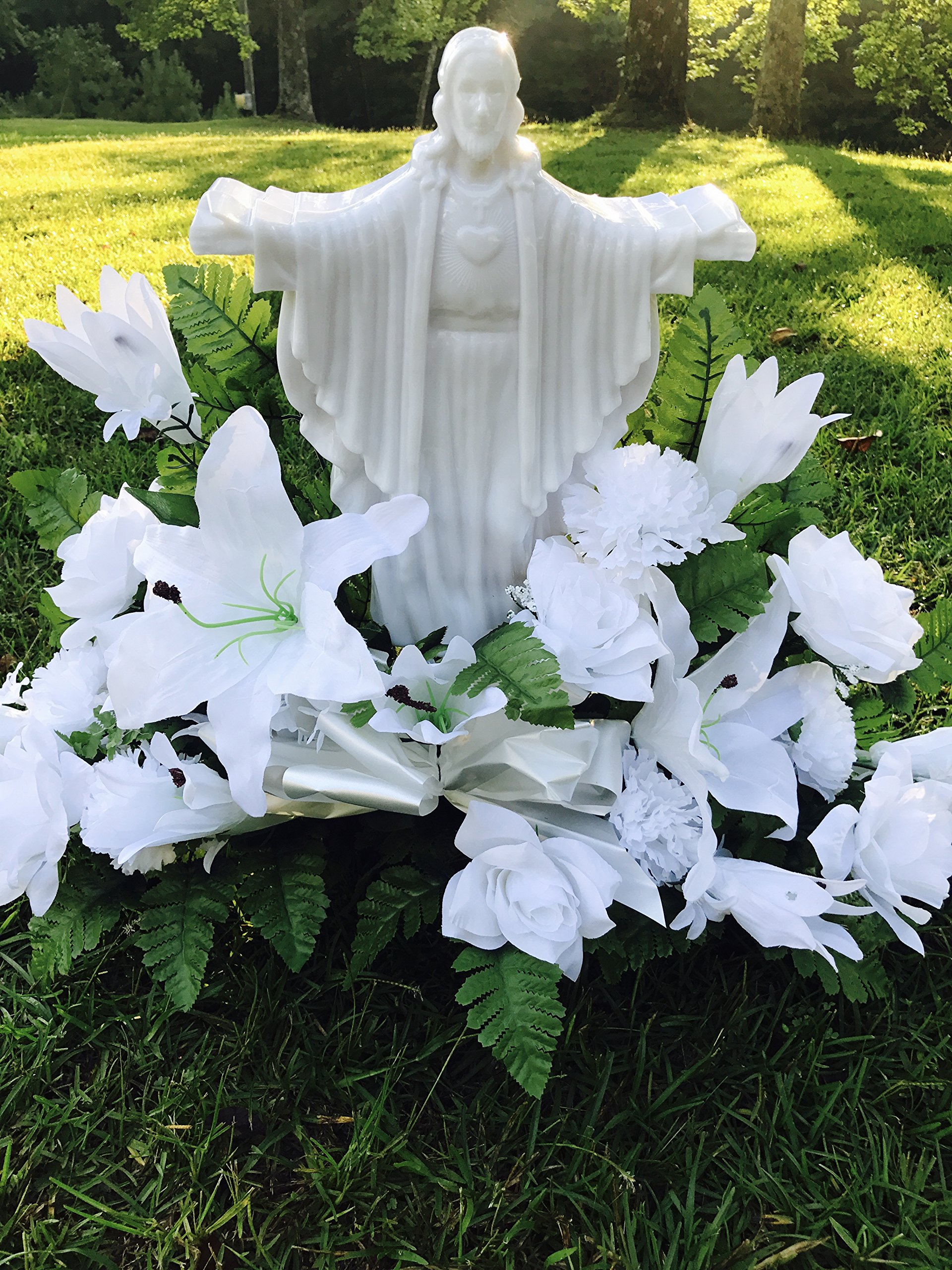 Solar Powered Jesus Automatically Lights Up At Night Cemetery