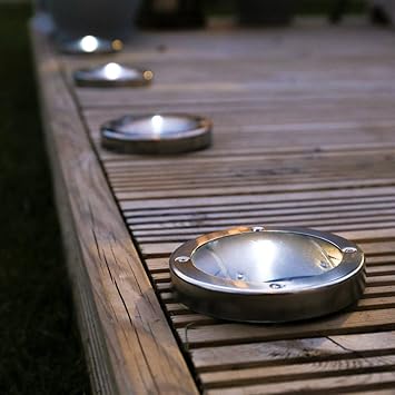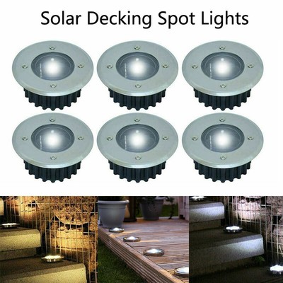 Solar Powered Led Decking Floor Spot Lights White Stainless Steel