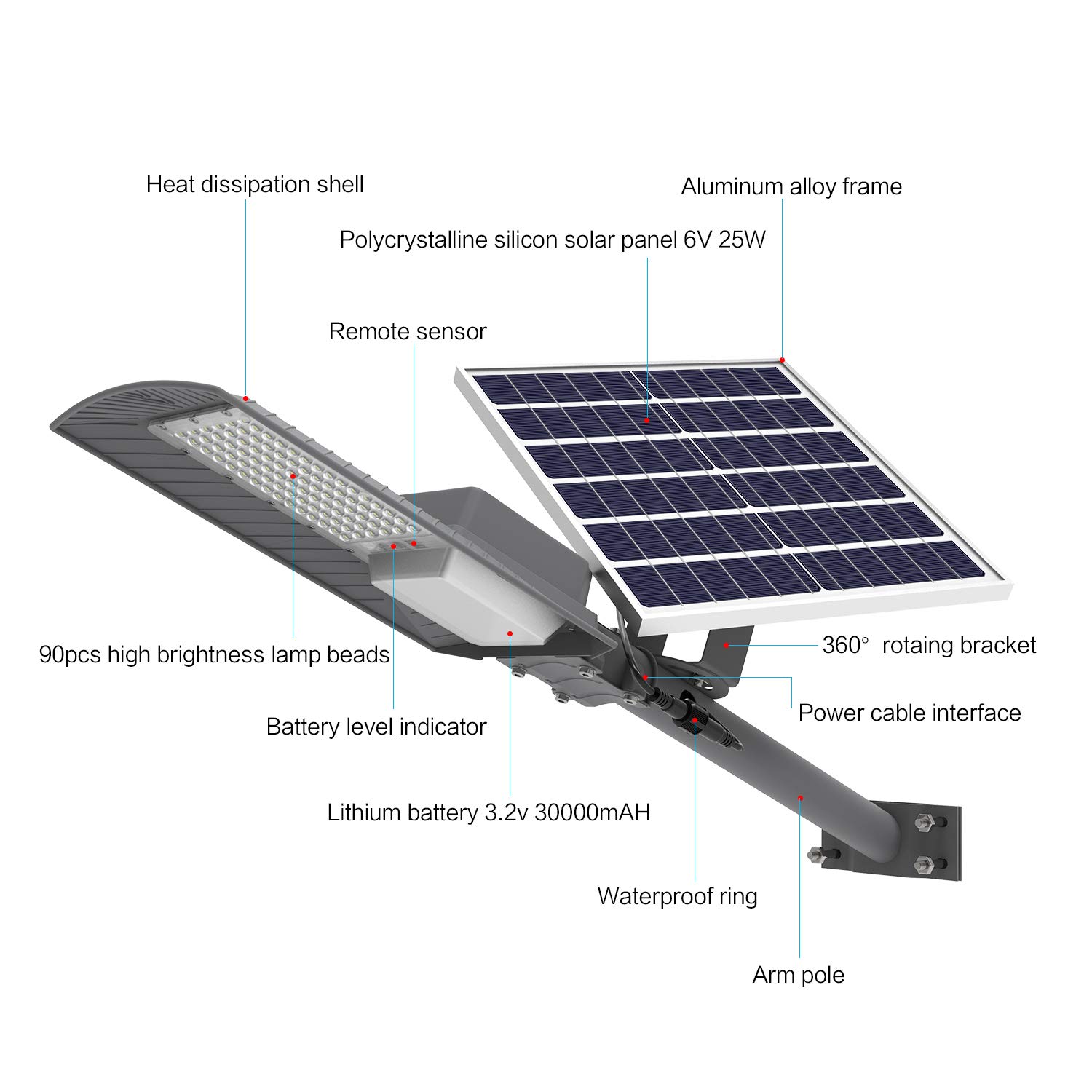 30w 3000lm Led Solar Street Light Outdoor Ip65 Dusk To Dawn Sensor