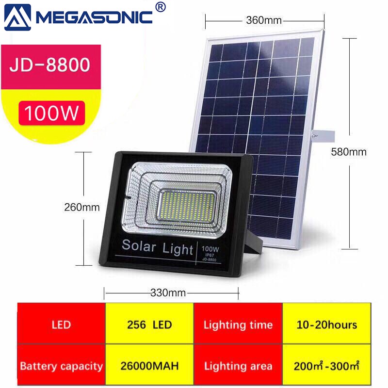 Megasonic Solar Led Outdoor Flood Light Street Lamp 100w Ip67
