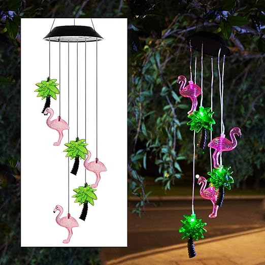 Obrecis Led Solar Wind Chime Lights Flamingo Palm Tree Solar