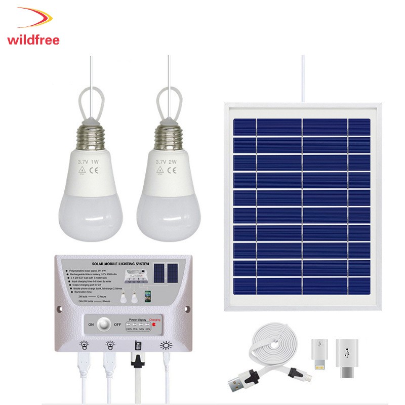 Portable Solar Panel Energy Kit With 2 Bulbs Night Light Kit For