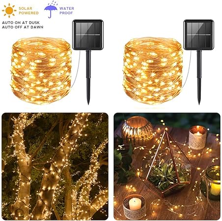 Amazon Com Pcjhsp Solar Powered String Lights 2 Pack 100 Led