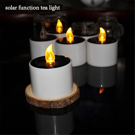 Youngerbaby 6pcs Solar Powered Yellow Tea Light Candles Romantic