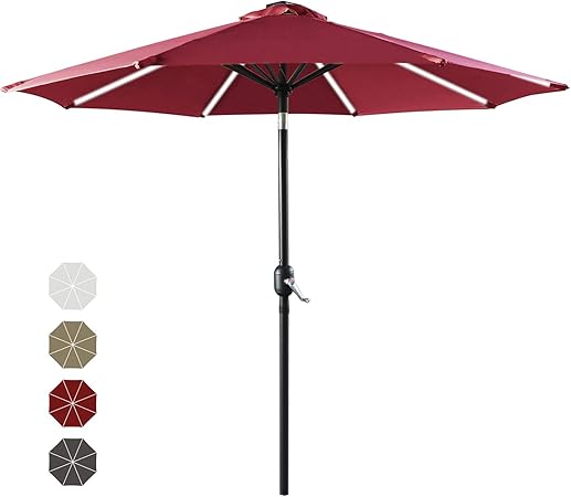 Dienspeak Deluxe Round 9ft Patio Beach Umbrella With Solar Powered