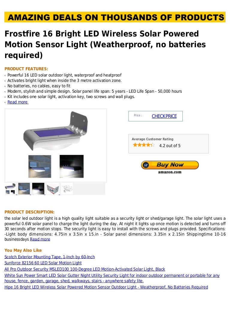 Frostfire 16 Bright Led Wireless Solar Powered Motion Sensor Light