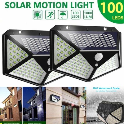 2pack 100 Led Solar Powered Light Outdoor Motion Sensor Wall Yard