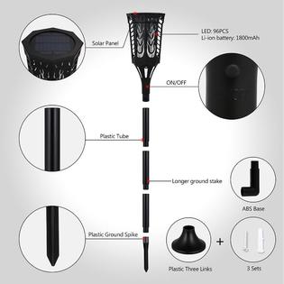 Solar Torch Lights Dancing Flame Lighting 96 Led Flickering Tiki