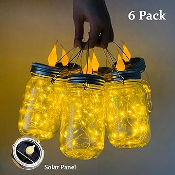 Nurluce Solar Mason Jar Lights 6 Pack Hanging Solar Lights 25 Led