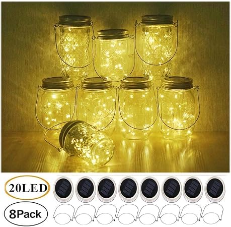 Mason Jar Solar Lights 8 Pack 30 Led Fairy Hanging Jar Lights