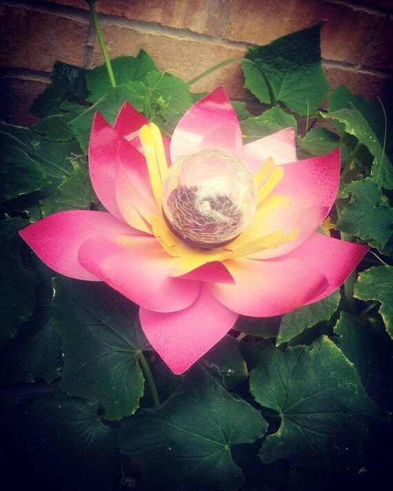 Pink Lotus Metal Flower Solar Light Metal Garden Art Metal Etsy