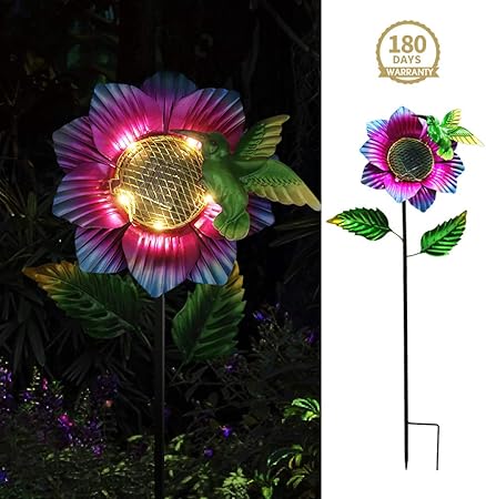 Mumtop Solar Garden Lights Flower Metal Stakes Outdoor Solar