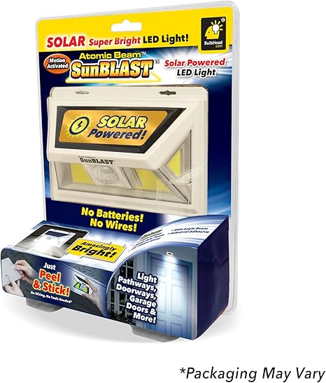 Ever brite light solar powered cordless outdoor led motion sensor path security light from as seen on tv is the motion activated solar powered led light adds safety to your home. Atomic beam sunblast is a solar powered motion activated light. It is ideal for use both indoors and outdoors.