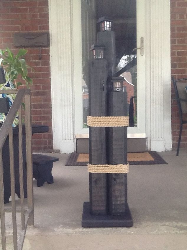 Nautical Wooden Dock Piling Pier Post With Rope Lighthouse Man