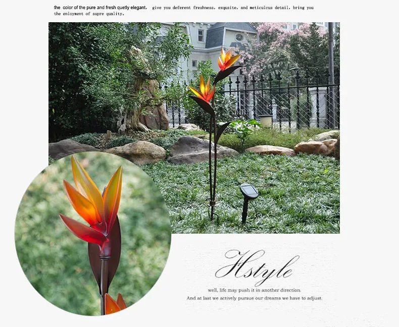 Light Control Led Solar Lights Bird Of Paradise Plastic Flowers