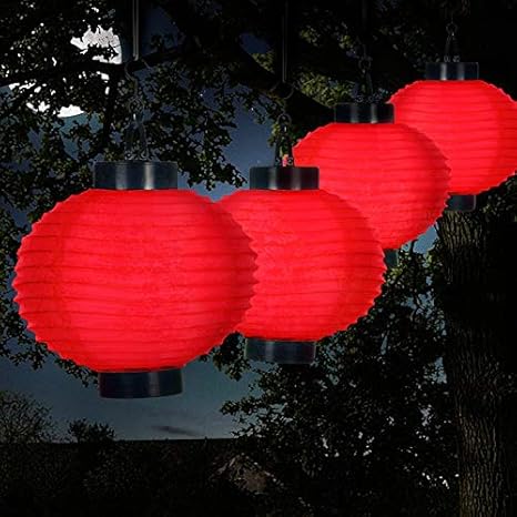 Amazon Com Red Chinese Lantern Solar Battery Operated Led