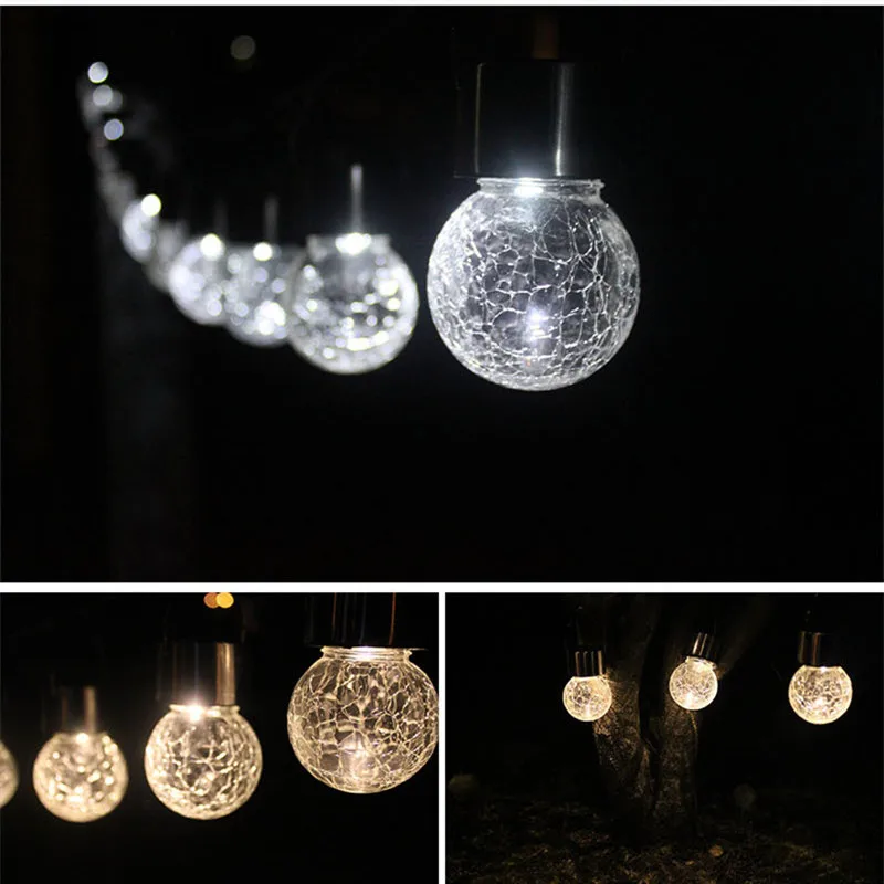 Solar Bulb Crackle Glass Ball Led Bulbs Hanging Lights Solar