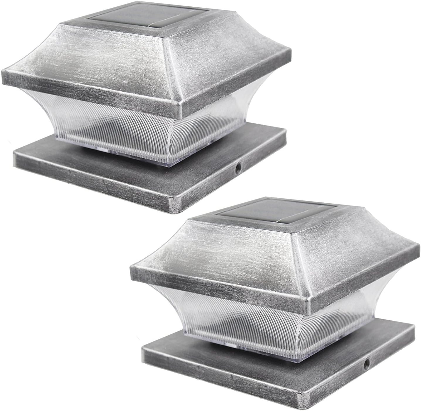 White Solar Post Cap Lights Two 5x5 Or 6x6 Metal Warm White Led