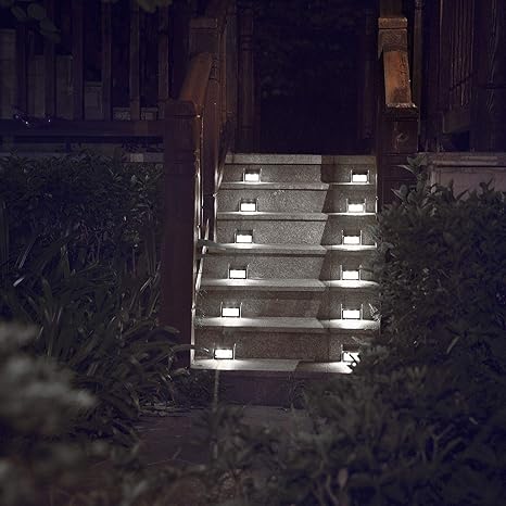 Solar lights for steps on deck. They allow for a gorgeous soft glow without any electricity or wiring. They can all be used as solar stair lights for deck lighting patio. Amazons choice for solar lights deck steps.