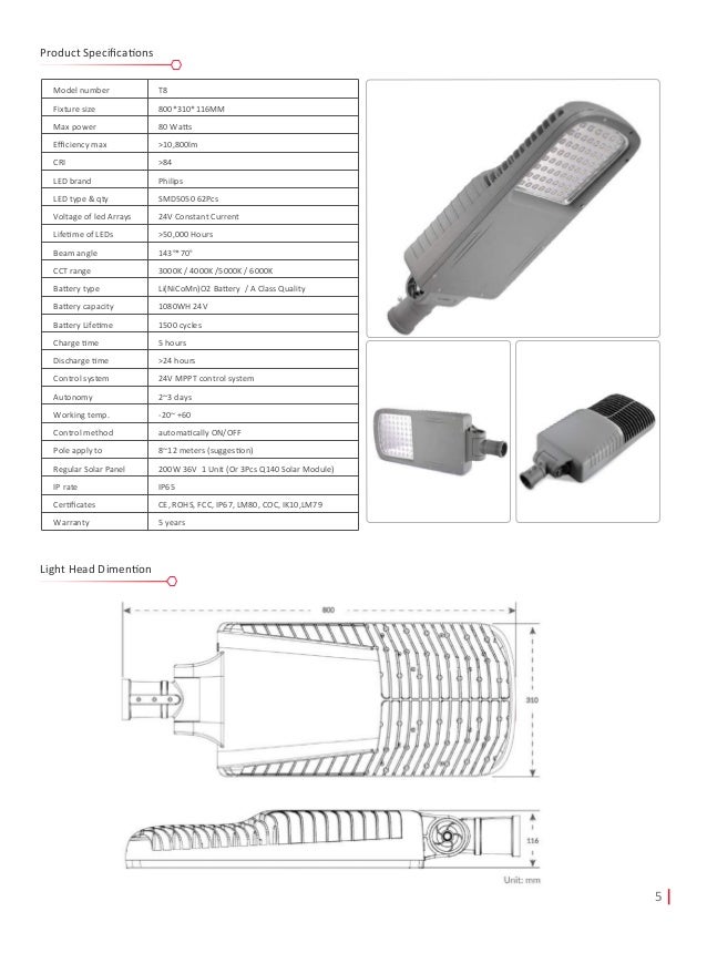 Data Sheet Of 80w Vertical Solar Street Light For 10 Meters Pole