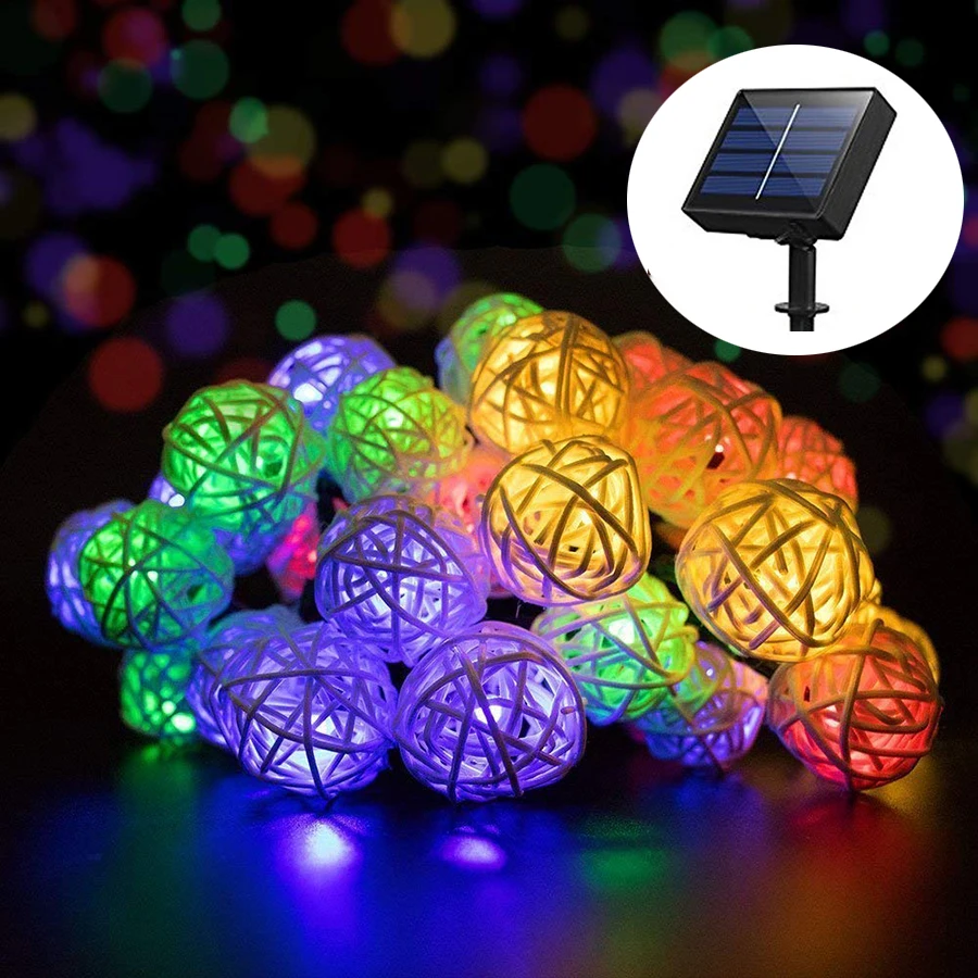 Solar Powered Led String Lights 6m 30leds Rattan Balls String