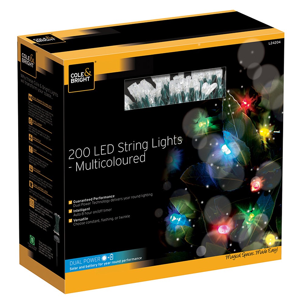 Cole Bright Dual Powered Solar 200 Led String Lights