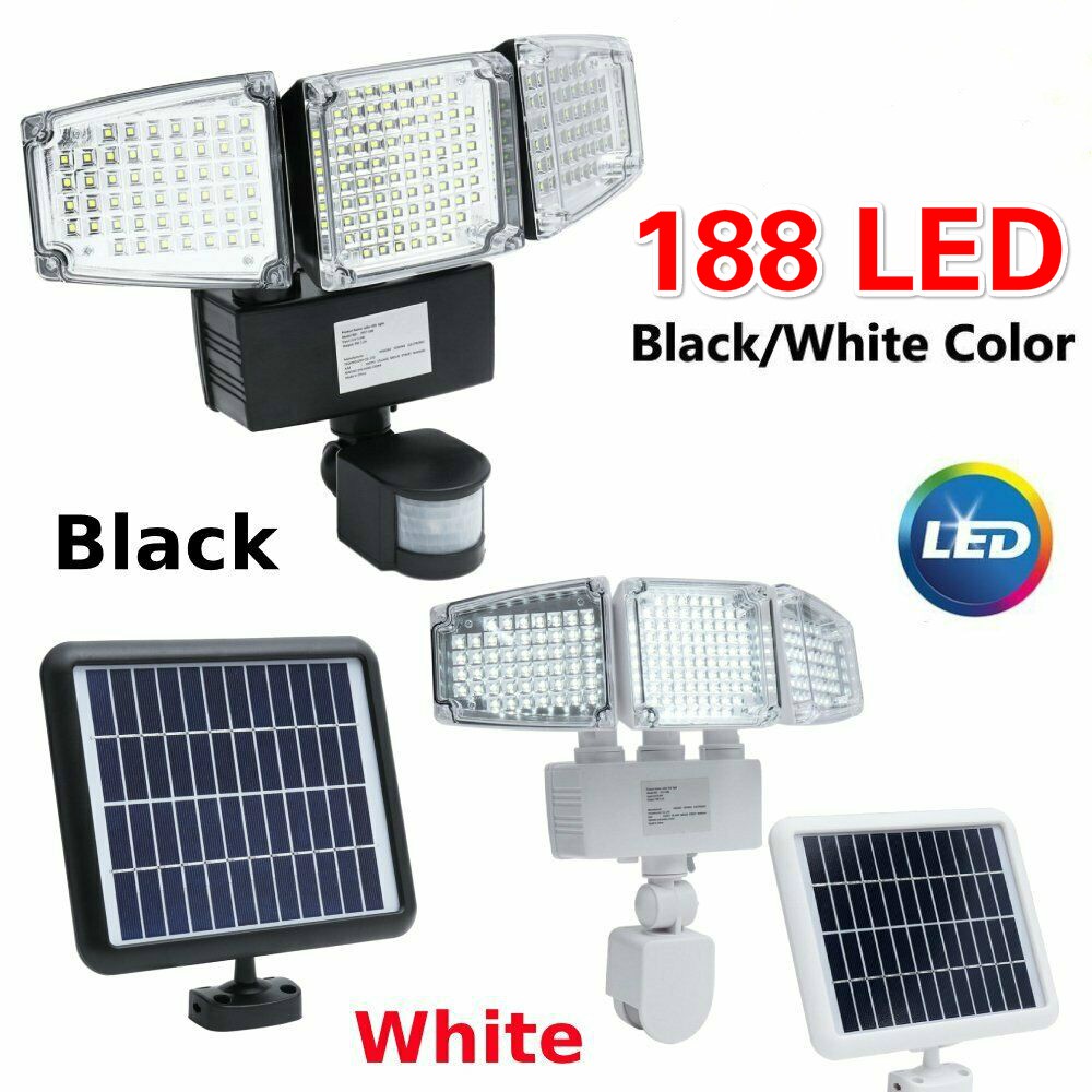 3 Head 188 Led Solar Security Motion Flood Light 1200lm Outdoor