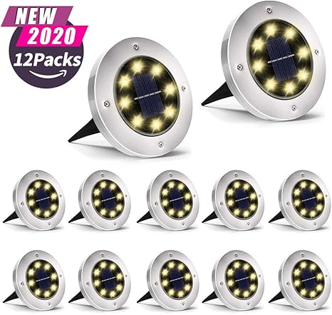 Otdair Solar Ground Lights 8 Led Warm Light Outdoor Solar Disk